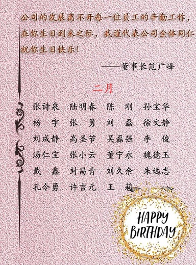 【生日祝福】恭祝2月生日的員工生日快樂!