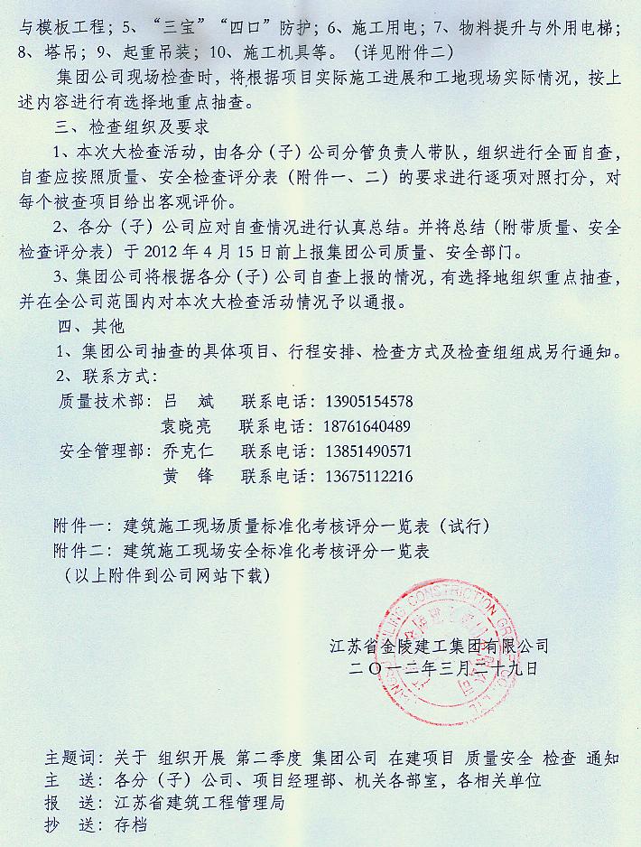 關于組織開展第二季度集團公司在建項目質量安全大檢查的通知