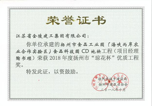 公司承建的揚州食品工業園項目榮獲2018年度揚州市優質工程獎“瓊花杯”