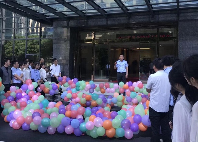 上午9時58分,隨著集團公司董事長范廣峰簡短而隆重的新大樓致辭,全體員工紛紛踩下腳邊五彩繽紛的彩色氣球,瞬間爆發出禮炮般喜慶的鳴奏曲,此刻將金陵建工集團新辦公大樓落成喬遷儀式推向了高潮,標志著新辦公大樓正式落成及完成喬遷。