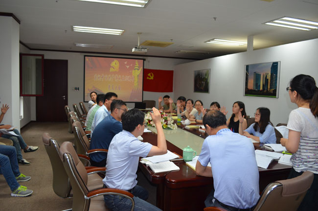 2016年7月2日上午9點30分,為慶祝建黨95周年,公司總部黨員大會在第二會議室召開,參加此次會議的有全體正式黨員、預備黨員、入黨積極分子,會議由宗敏同志主持。
