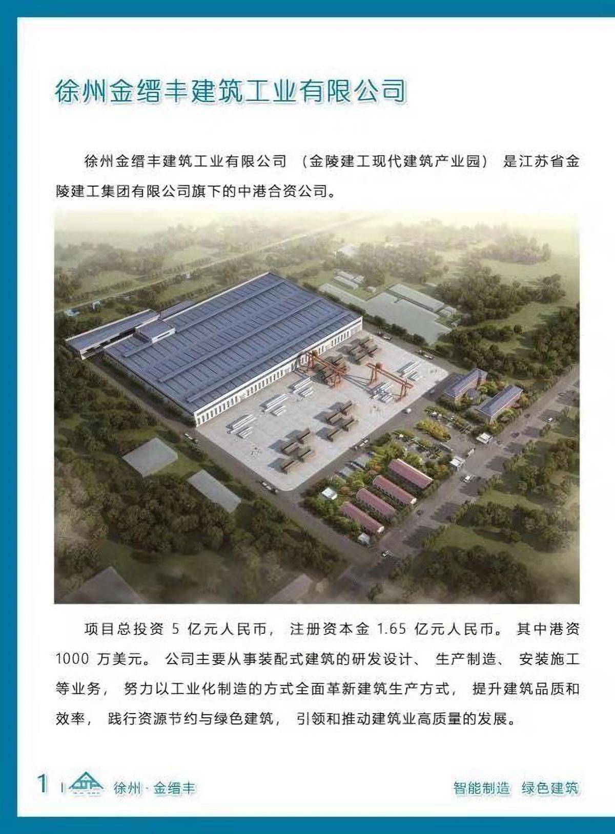 徐州金縉豐建筑工業(yè)有限公司(金陵建工現(xiàn)代建筑產(chǎn)業(yè)園)是江蘇省金陵建工集團有限公司旗下的中港合資公司。公司注冊資金1.65億元人民幣。其中外資1000萬美元。公司將充分發(fā)揮金陵建工集團研發(fā)、設計、生產(chǎn)、施工、投資一體化的優(yōu)勢,努力以工業(yè)化制造的方式全面革新建筑生產(chǎn)方式,提升建筑品質和效率,踐行資源節(jié)約與綠色建筑,引領和推動建筑業(yè)高質量的發(fā)展。