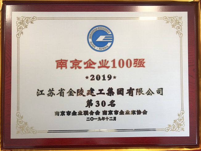 2019年度“南京企業100強 第30名”