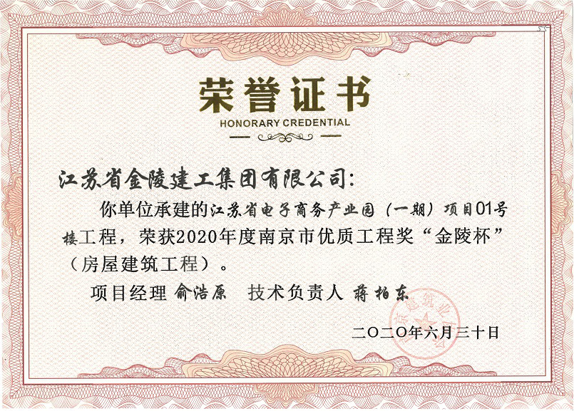 2020年度南京市優質工程獎“金陵杯”