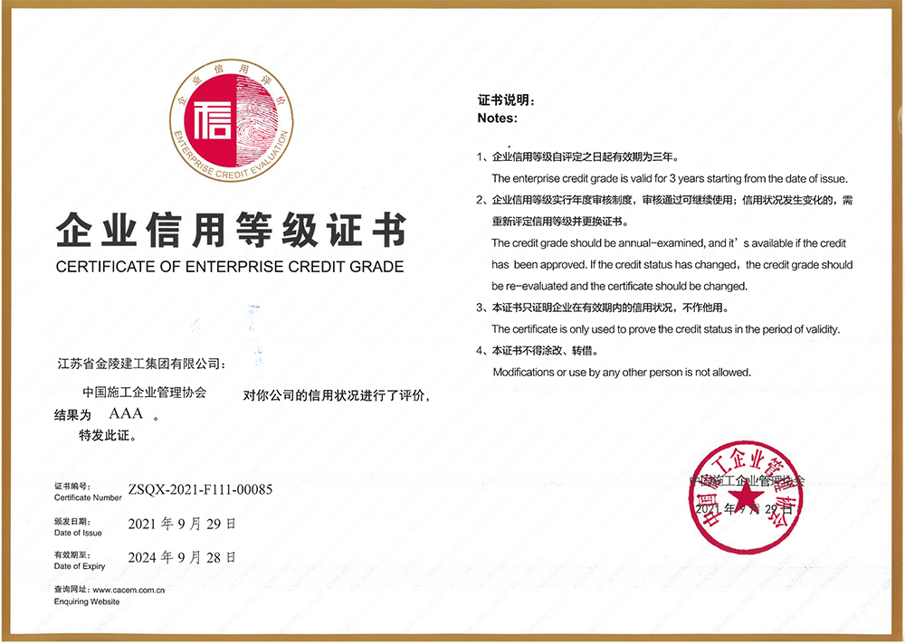 2021中施協企業信用等級AAA證書